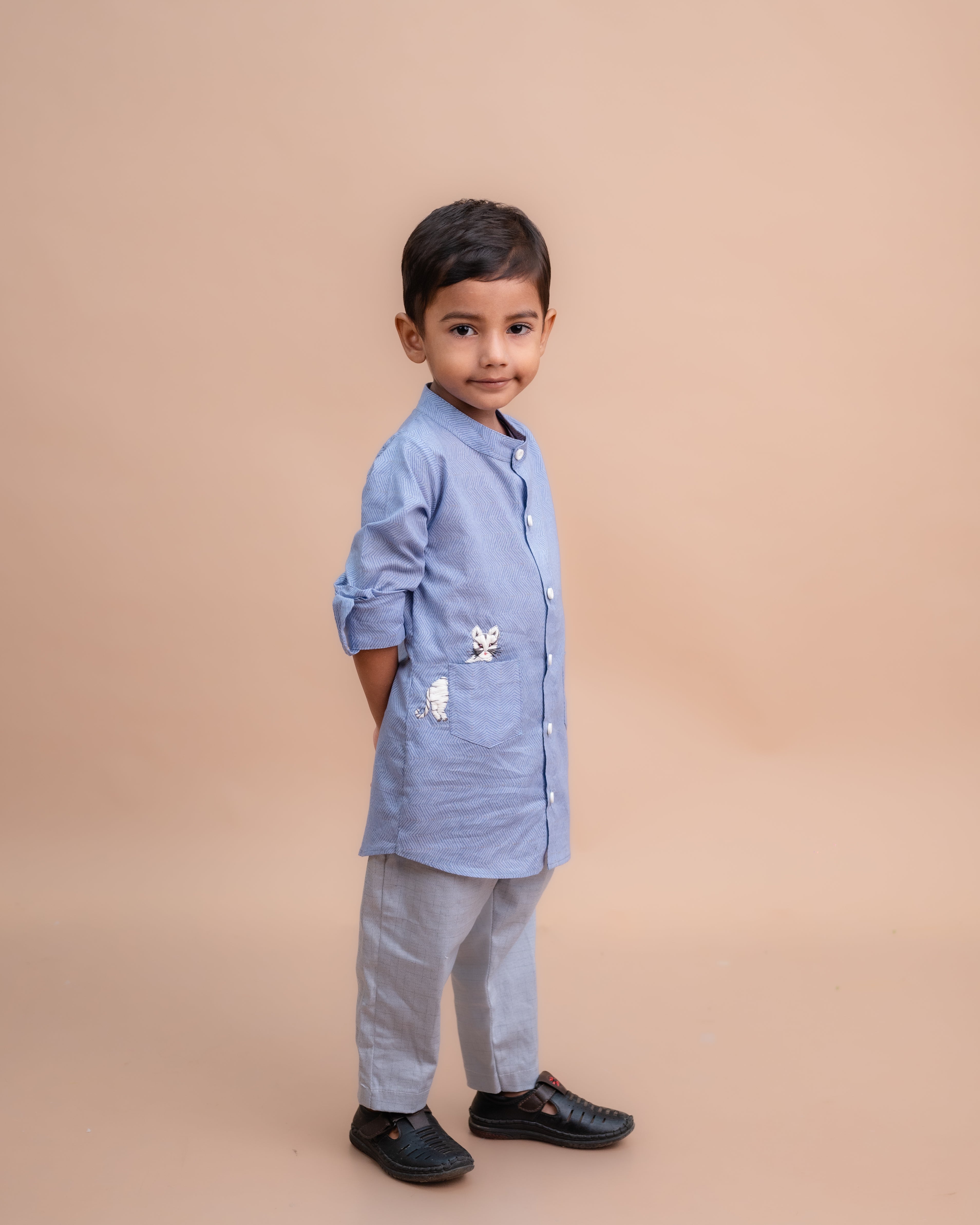 Layering will always be a fashion statement, regardless of who is the wearer. For little kids, this adage stays the same. Opt for lightweight jackets and hoodies that can add the perfect details to any simple outfit. It can also make for a sensible decision when the weather gets too cold. For a touch of fusion, pair a nehru jacket for boys with a shirt to create a statement for casual celebrations.