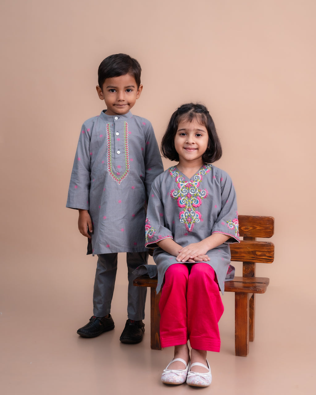 ● Coordinated sibling outfits that make for picture-perfect moments.