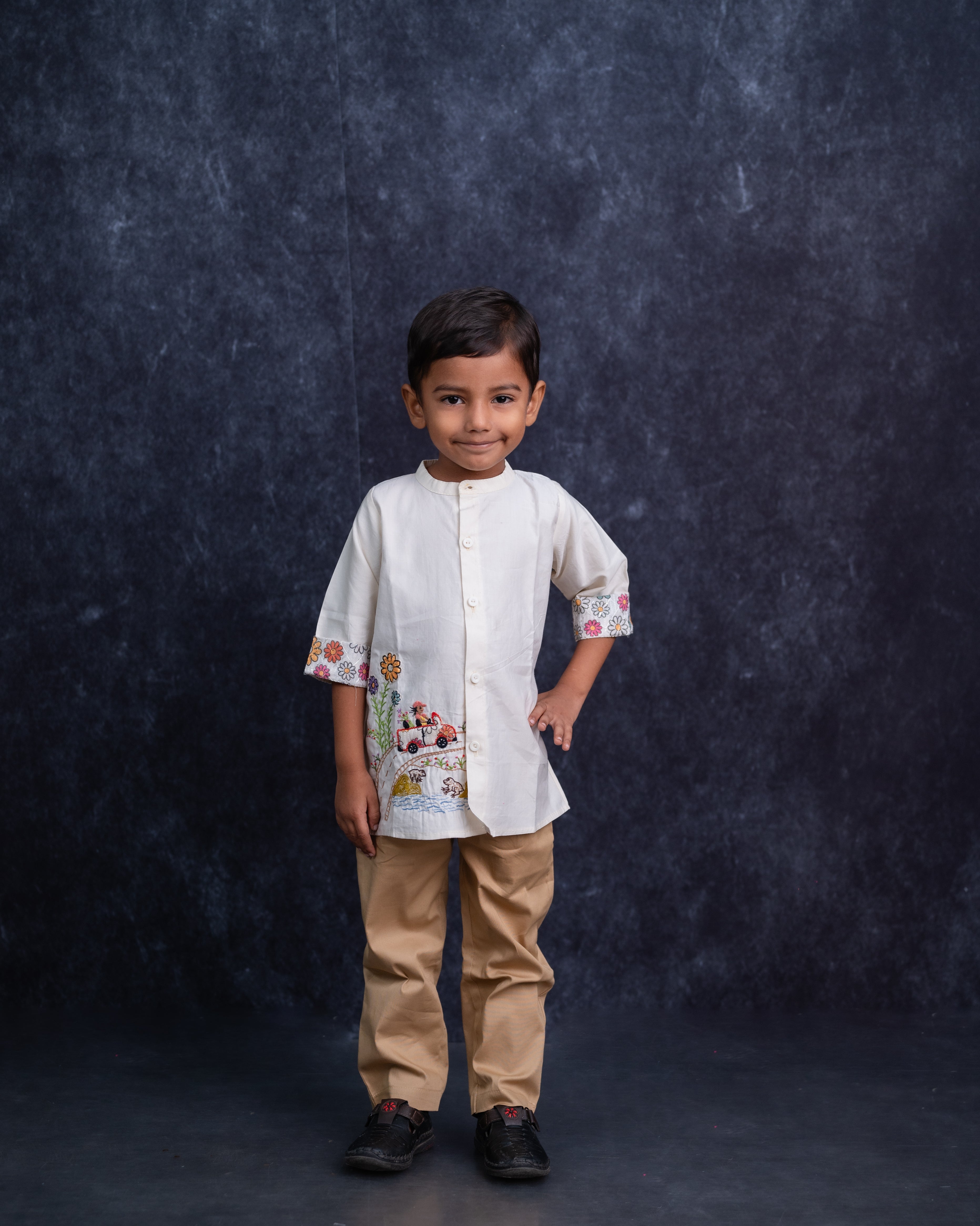 Give your little boy the edge with this statement-worthy Eddie Shirt. With beautiful embroidery imbibing floral charm, this handmade cotton shirt is versatile enough for everyday wear as well as for special occasions.