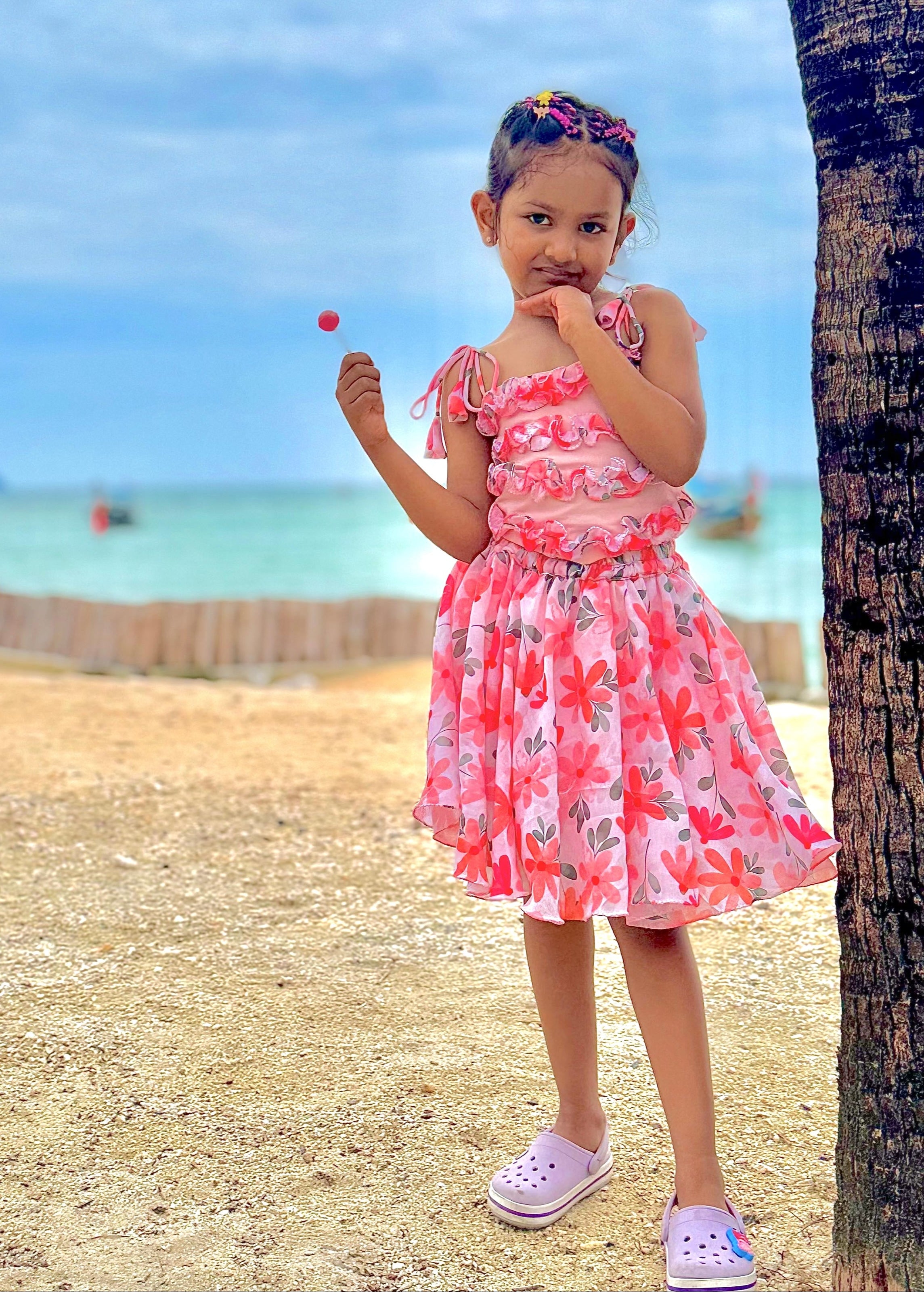This chic and comfy floral printed cotton skirt set is the quintessential easy-going designer outfit for baby girls. With a adorable shade of pink, this outfit is perfectly placed for a variety of occasions without being amiss of elegance.