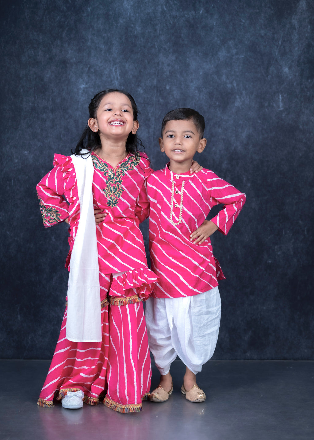 Your child’s unique personality is always on display. And as no child is same, why settle for a fast - fashion outfit, that will look good momentarily but lose it's charm by the second wear itself. Our designer ethnicwear collection for girls and boys is imbibed with Indian handicraft, prints and intricate embroideries, all made with the softest materials. With these thoughtfully crafted pieces, you're bringing a unique resplendence to your child’s wardrobe.