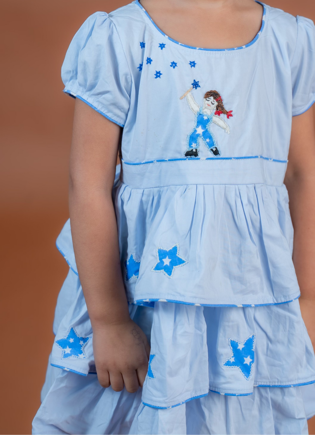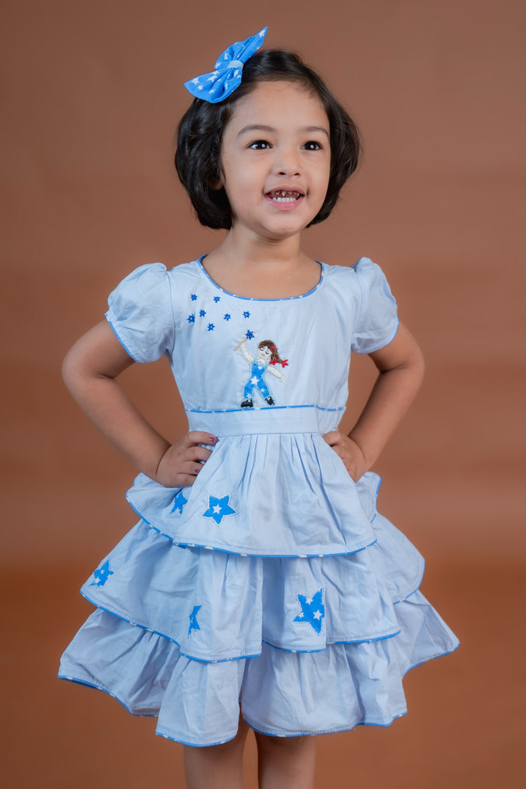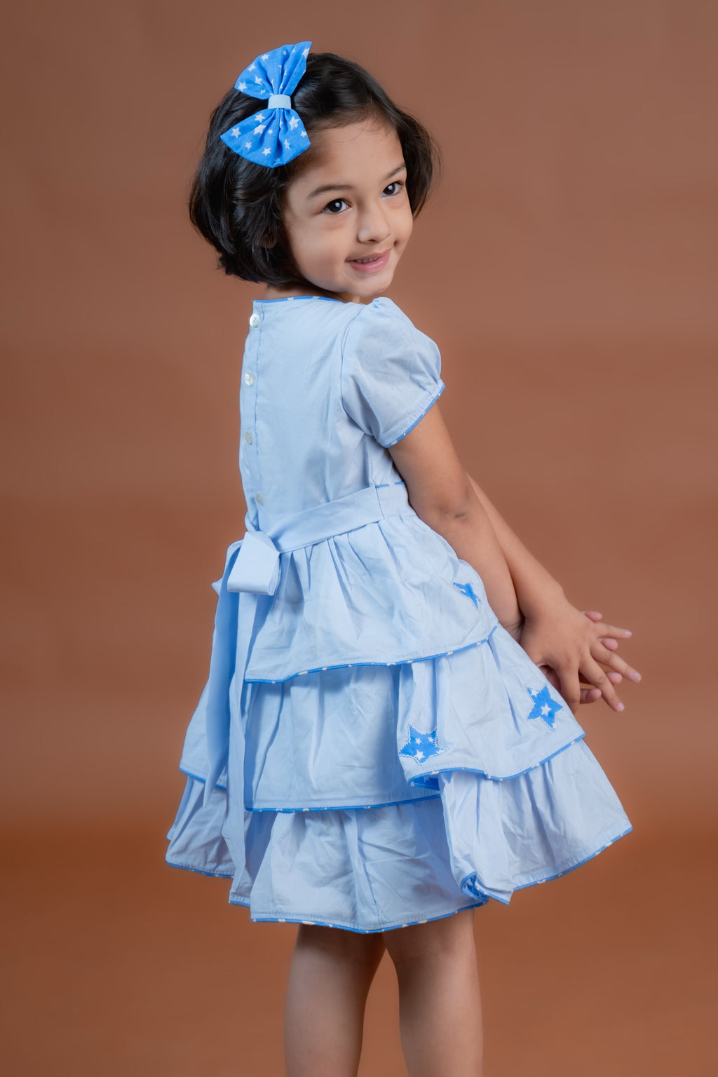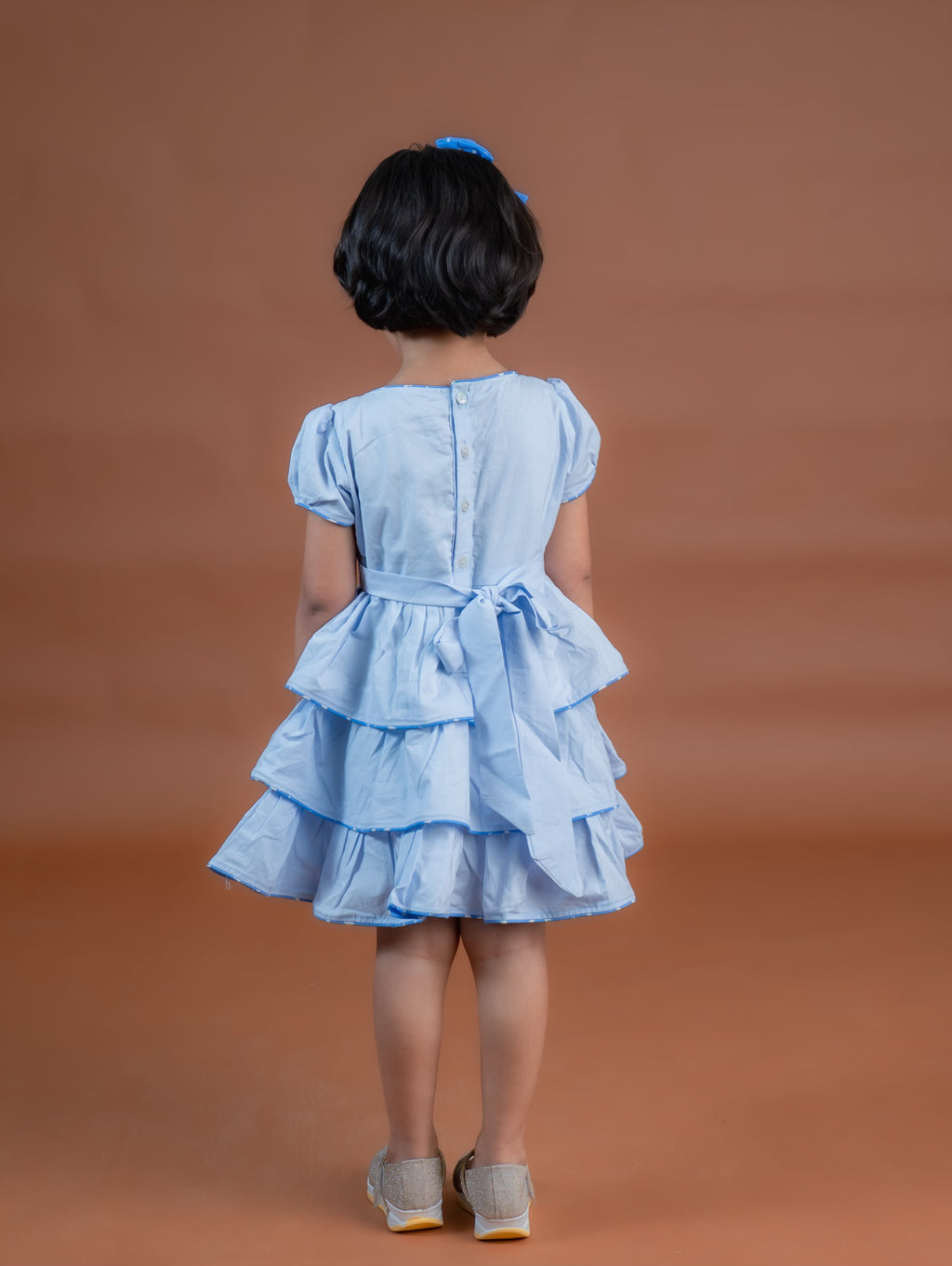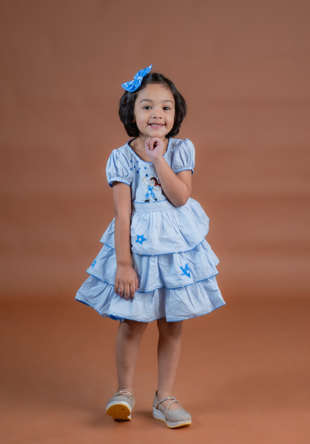 Pippa Dress - Ice Blue Cotton Embroidered Dress for Girls