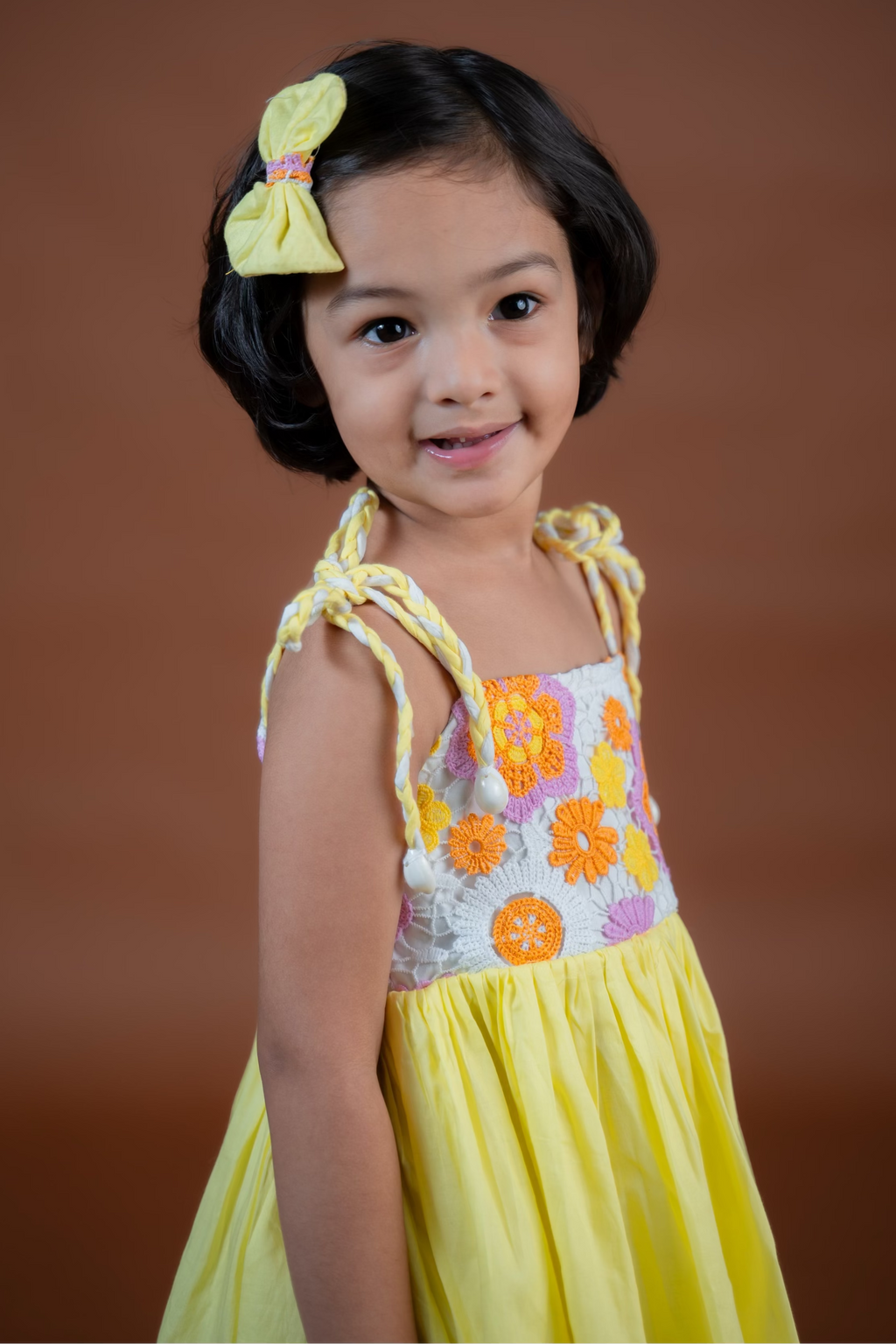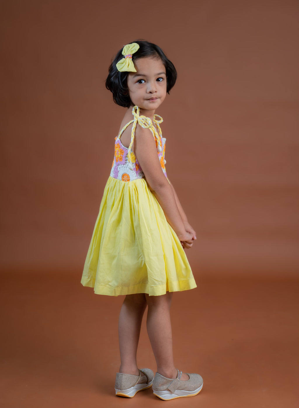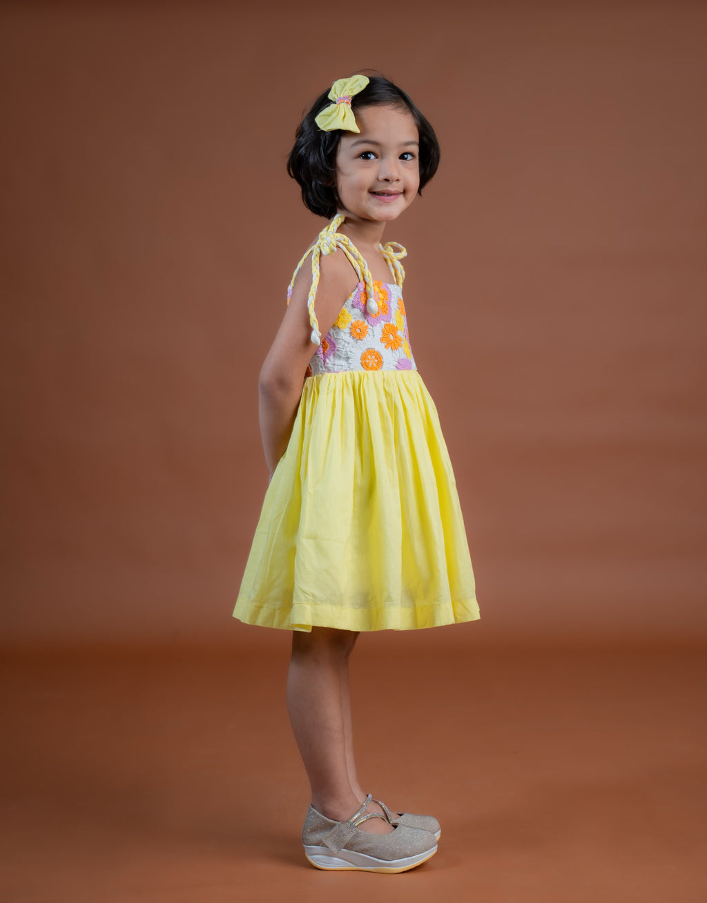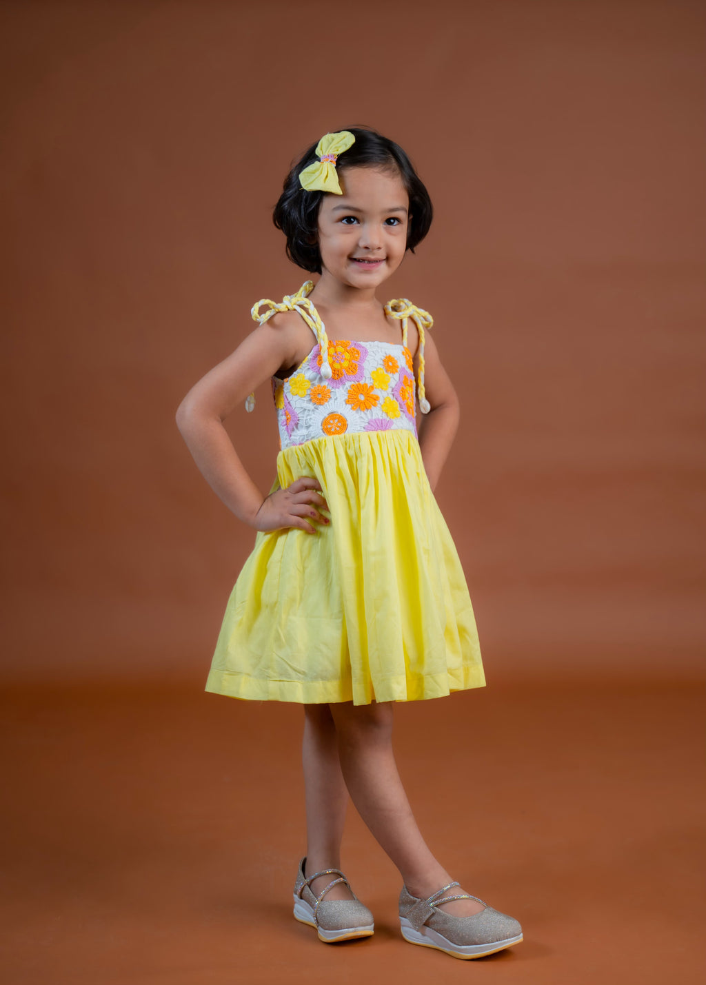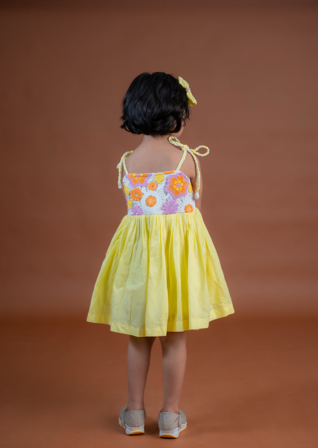 The Gemma Dress is made in high quality cotton fabric. It features a short bodice with Crochet detailing, Tie- up straps and a full flared bottom. It is fully lined with high quality 100% cotton for maximum comfort.